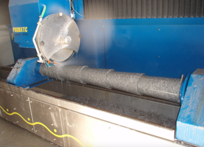 - Torno: es una máquina CNC diseñada para trabajar la piedra natural, permitiendo dar forma cilíndrica o realizar piezas torneadas mediante la rotación controlada de la piedra sobre su eje. Gracias a su sistema automatizado, el torno regula con precisión la velocidad y el avance de corte, facilitando la producción de columnas, balaustres, capiteles y otros elementos decorativos o arquitectónicos con acabados uniformes y detallados.