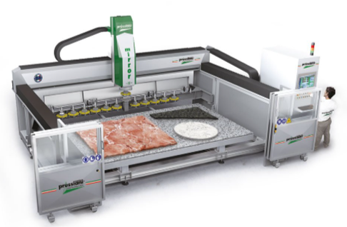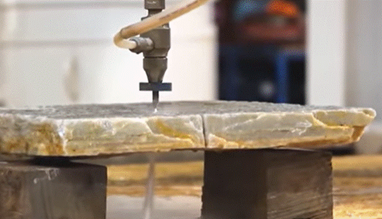 - WaterJet o corte por agua: Estas máquinas son herramientas de corte de alta precisión que utilizan un chorro de agua a muy alta presión, mezclando con abrasivos, para cortar una gran variedad de materiales. Este tipo de maquinaria permite trabajar materiales delicados y duros, no solo piedra natural, sin causar estrés térmico, lo que reduce considerablemente el riesgo de provocar daños o deformaciones en la pieza trabajada.