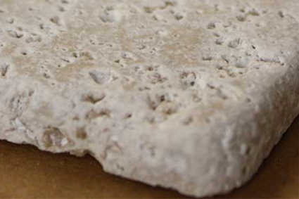 Busca reproducir el desgaste natural que el paso del tiempo y los agentes ambientales provocan en la piedra. Se puede lograr por medios mecánicos (cepillos abrasivos que de forma rotatoria generan ondulaciones y relieves imitando la erosión natural), dejando en superficie las partes más duras o los fósiles. El resultado es una textura sedosa, con relieves suaves y aspecto antiguo. Su uso más común es tanto para interiores como para exteriores, en este último caso se deberá comprobar que el grado de resbaladicidad es el adecuado.