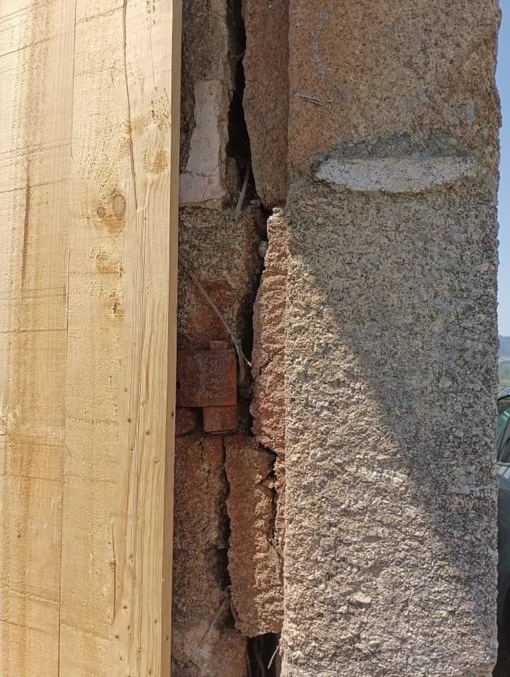 - Fisuras y roturas : Grietas o fracturas en las piezas de piedra. Pueden ser causadas por asentamientos o movimientos estructurales del edificio, tensiones internas del material, impactos accidentales, sobrecargas, cambios bruscos de temperatura, o una instalación deficiente (soporte irregular, juntas inexistentes o inadecuadas). Comprometer la integridad de la pieza y permitir la entrada de agua.