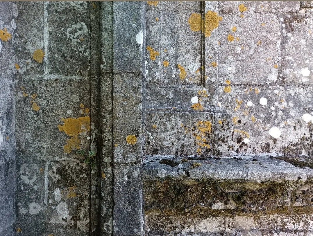 - Colonización por líquenes, musgos, algas y bacterias : Crecimientos superficiales que varían en color (verdes, negros, amarillos, rojizos). Prosperan en ambientes húmedos y con luz. Además del impacto estético, sus raíces o hifas pueden penetrar en los poros, retener humedad y generar ácidos orgánicos que atacan la piedra.