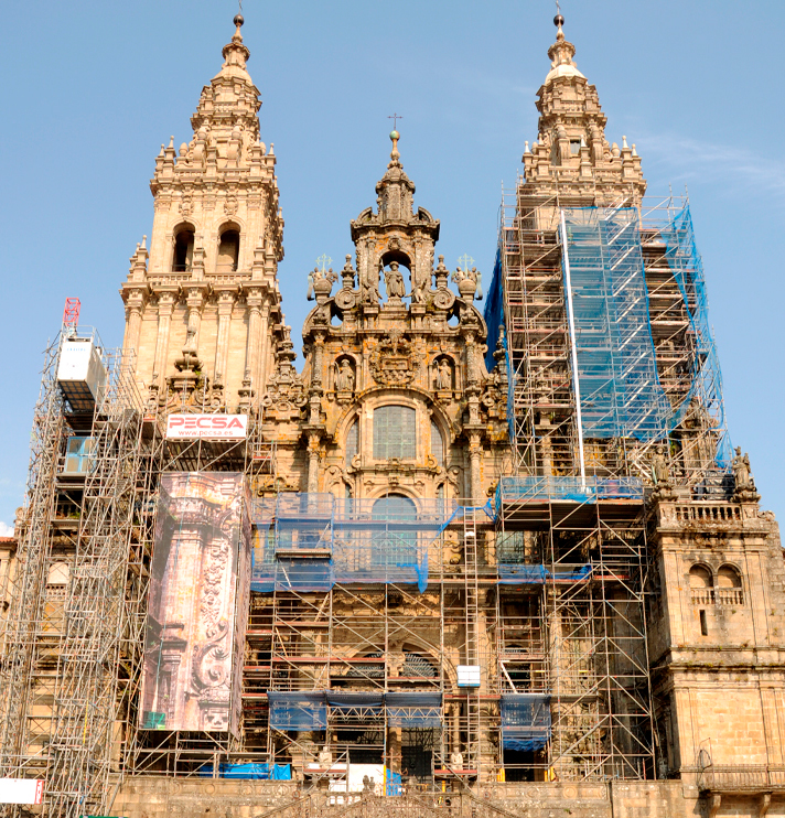 Obras de Restauración en la fachada del Obradoiro. Catedral de Santiago de Compostela.