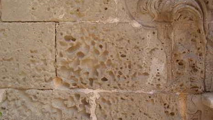 Disgregación mortero por eflorescencias. Fuente: http://pedrosalmeron.com/protocolos/restauracion-de-piezas-petreas-fracturadas-por-acciones-mecanicas/