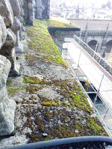 - Formación de costras biogénicas : Depósitos complejos formados por la interacción de microorganismos, partículas ambientales y productos de alteración de la piedra. Son más difíciles de eliminar que la simple colonización superficial.