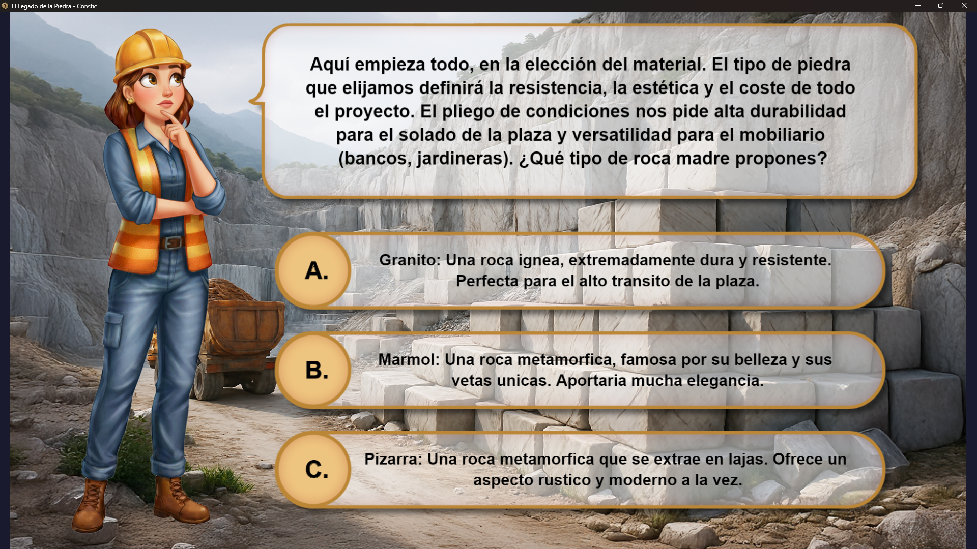 El juego está relacionado con la Unidad 2: "Transformación de la piedra natural". El jugador debe superar un mínimo de 6 a 8 desafíos en total, dependiendo de la ruta que escoja.